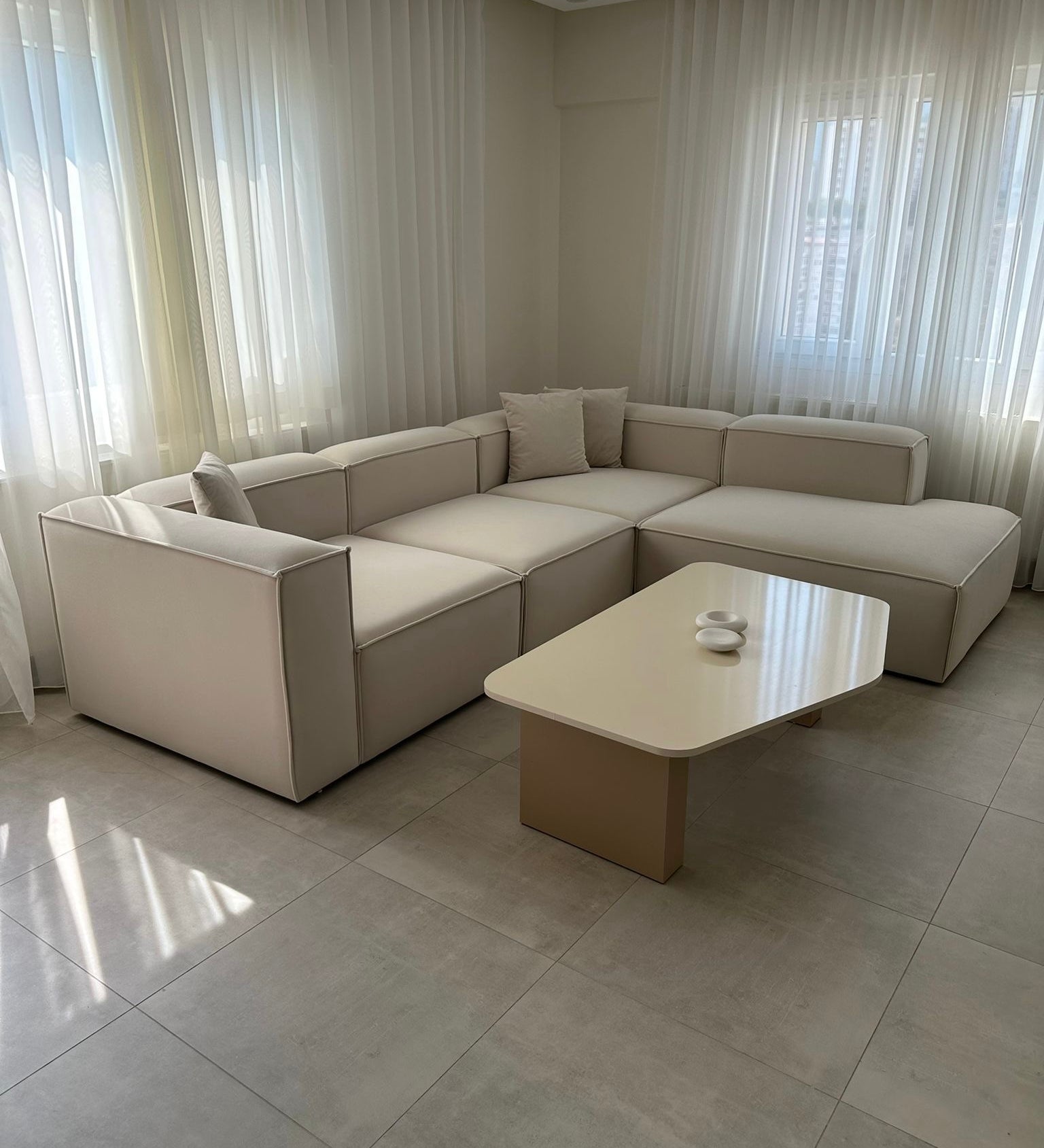 Ein Sofa was sich deinem Zuhause anpasst. Minimalistische Verarbeitung, dezente Nähte, passgenaue Module.